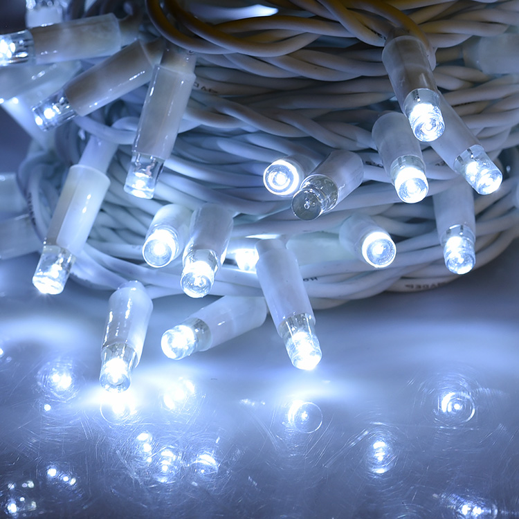 CATENA LUMINOSA 100 MAXI-LED CAVO BIANCO PROLUNGABILE CON LUCE BIANCA FISSA E INTERMITTENTE - PER DECORAZIONI EFFETTO CIELO STELLATO