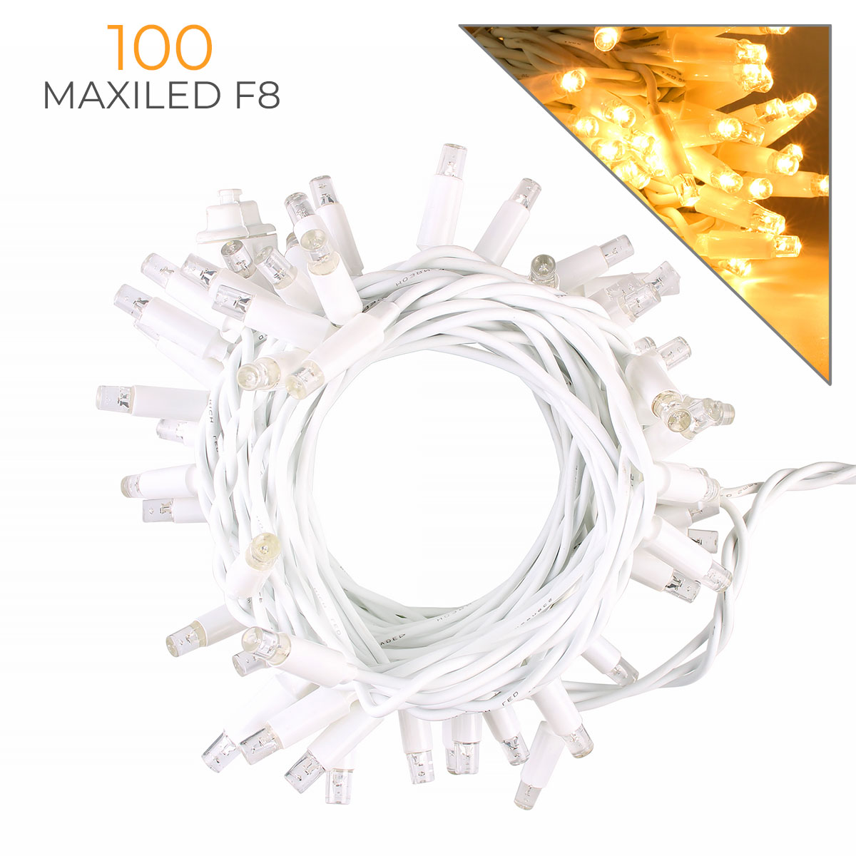 Scopri la qualità e la bellezza della catena luminosa professionale da 100 Maxi LED F8 con cavo bianco e luce calda fissa, lunga 10 metri e prolungabile fino a 20 pezzi (200 metri totali). Questa soluzione di illuminazione decorativa è ideale per creare atmosfere suggestive e accoglienti in ogni occasione, sia all’interno che all’esterno. Grazie al design elegante e alla robustezza dei materiali, si presta perfettamente per decorazioni natalizie, eventi, matrimoni, feste private, allestimenti di vetrine, ristoranti, terrazze, balconi, giardini e spazi pubblici. Il suo aspetto raffinato, unito alla tecnologia Maxiled Reflex F8, offre una resa luminosa potente e uniforme, mantenendo un basso consumo energetico.