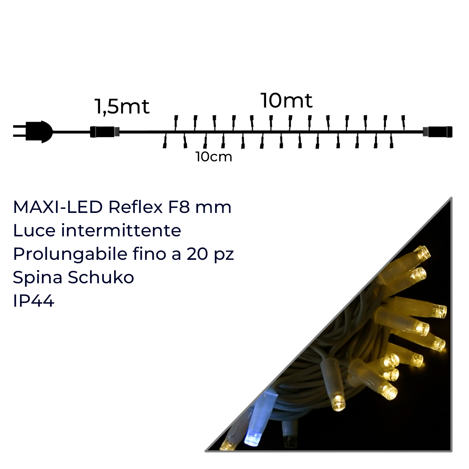 Infografica Catena Professionale 100 LED Luce Calda Fissa e Bianca Flash per Interni ed Esterni