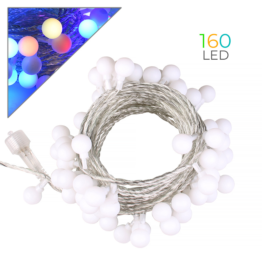 Infografica Catena 160 Luci LED a Forma di Perla Multicolore con Cavo Trasparente IP44