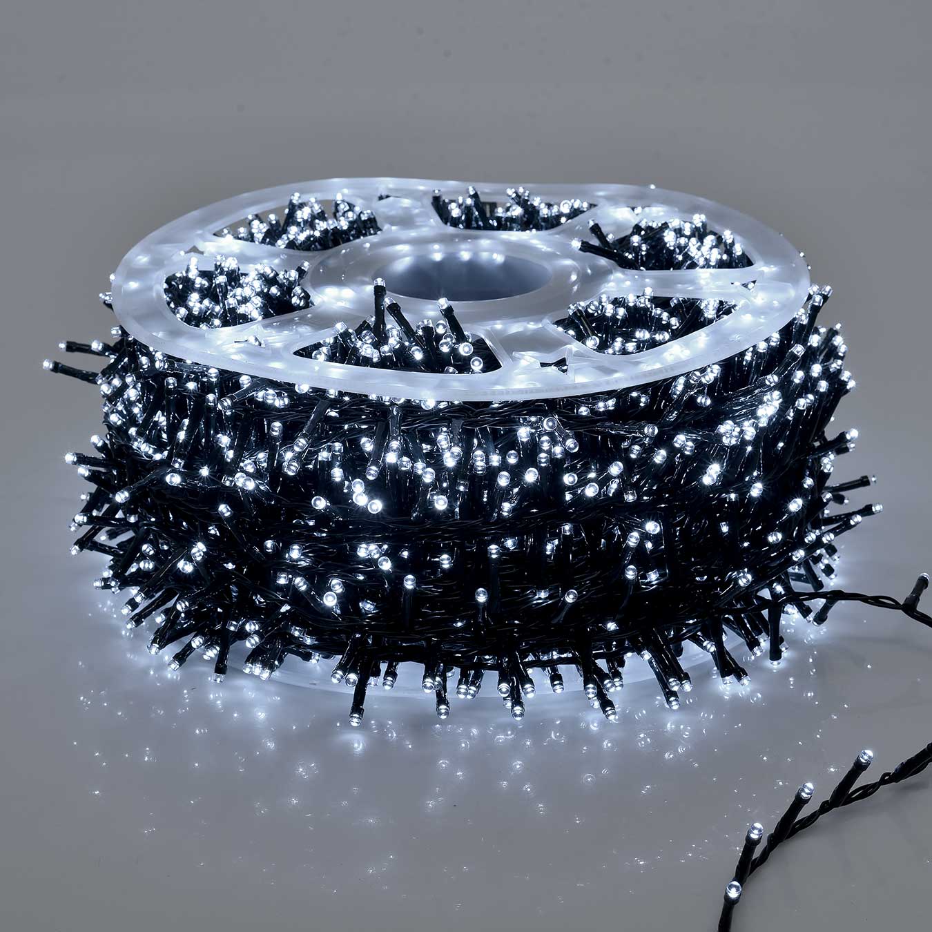 La Catena Luminosa 4000 LED Bianca Fredda è la scelta ideale per chi desidera creare atmosfere luminose eleganti, intense e durature in occasione del Natale, di eventi speciali o per l’arredo luminoso di spazi interni ed esterni. Con una lunghezza totale di 100 metri, questa catena luminosa è perfetta per decorare alberi di Natale di grandi dimensioni, ringhiere, terrazzi, facciate, giardini e vetrine commerciali, offrendo una luminosità uniforme e di grande impatto scenico.