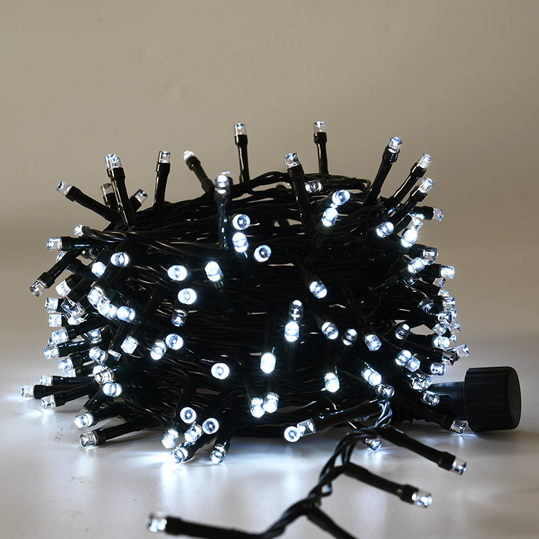 Infografica Catena Luminosa Cluster 480 LED Luce Bianca Intermittente Cavo Verde su Sfondo Bianco
