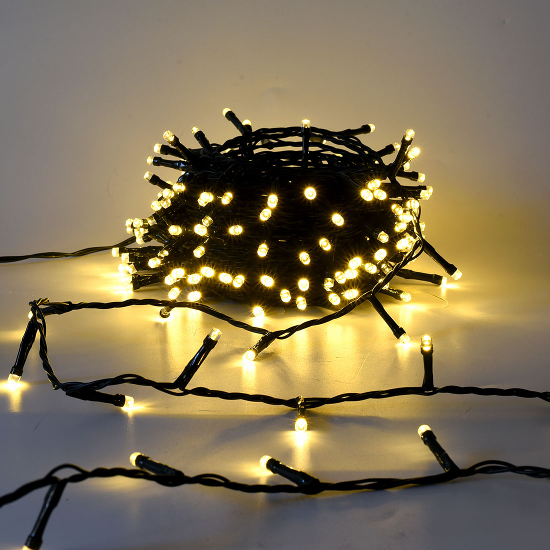 CATENA DI LUCI LED GIALLI LUCE CALDA DA 2000 LED SU 100M DI CAVO VERDE TRASFORMATORE 31V - PER INTERNI ED ESTERNI