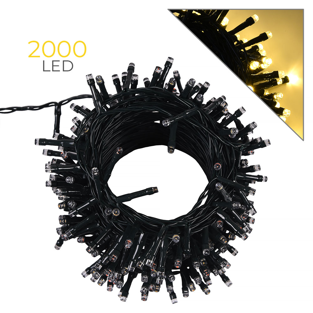 CATENA DI LUCI LED GIALLI LUCE CALDA DA 2000 LED SU 100M DI CAVO VERDE TRASFORMATORE 31V - PER INTERNI ED ESTERNI