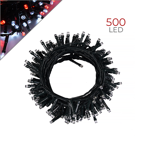 CATENA LUMINOSA LED 500 LUCI BIANCHE E ROSSE - VERSATILE SICURA E DUREVOLE PER INTERNI ED ESTERNI