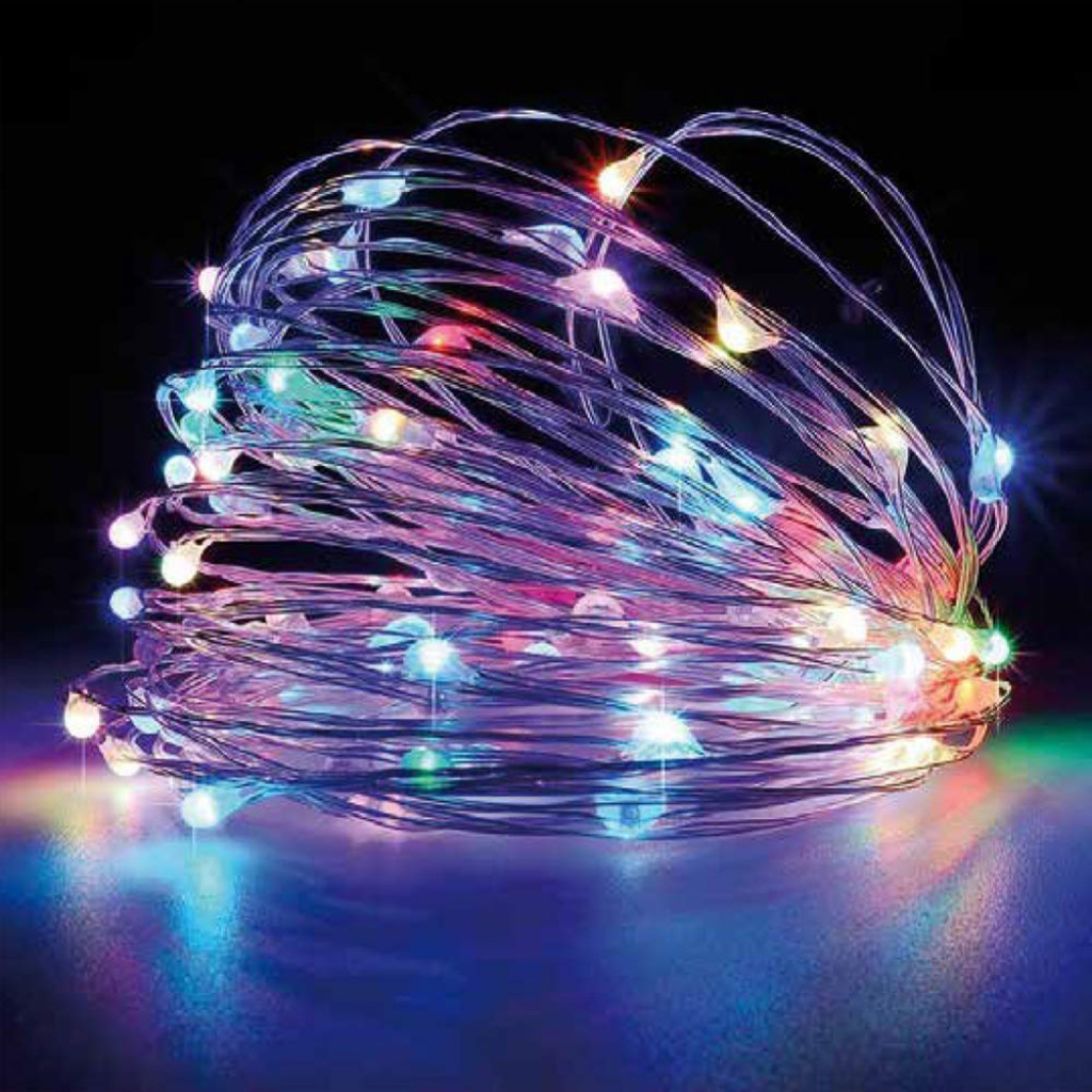 Catena luminosa led Natale filo rame 100 micro led batteria 10MT luce MULTICOLOR