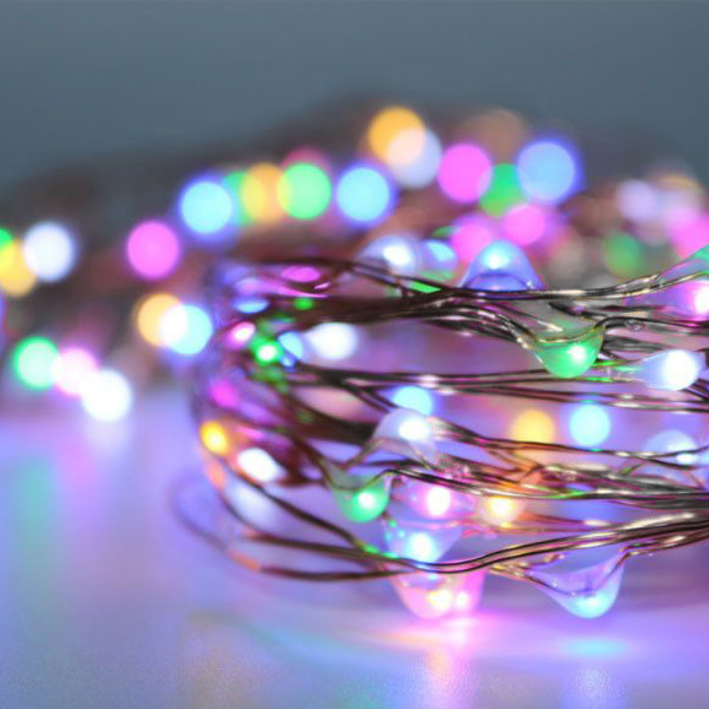 Catena luminosa led Natale filo rame 100 micro led batteria 10MT luce MULTICOLOR