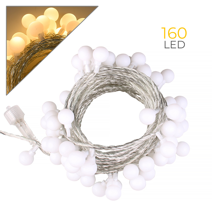 CATENA LUMINOSA 160 LED GIALLI A FORMA DI PERLA DA ESTERNO - DECORAZIONE NATALIZIA ELEGANTE E VERSATILE