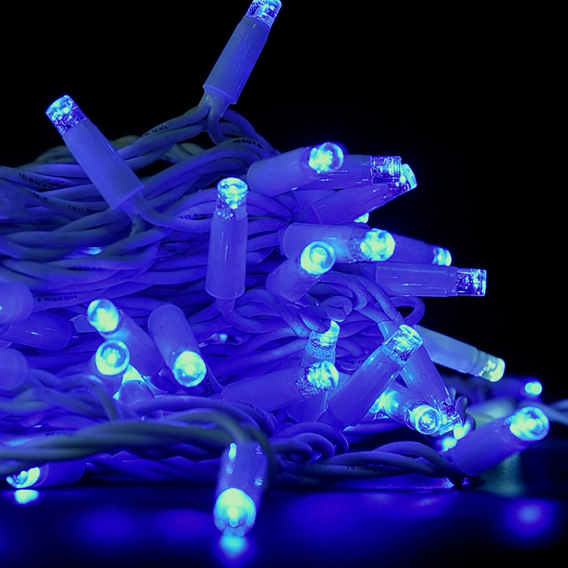 CATENA LUMINOSA PROFESSIONALE 100 MEXI-LED 10M LUCE BLU FISSA E BIANCA FLASH - ESTENDIBILE FINO A 200M PER DECORAZIONI ESTERNE DI ALTA QUALITA'