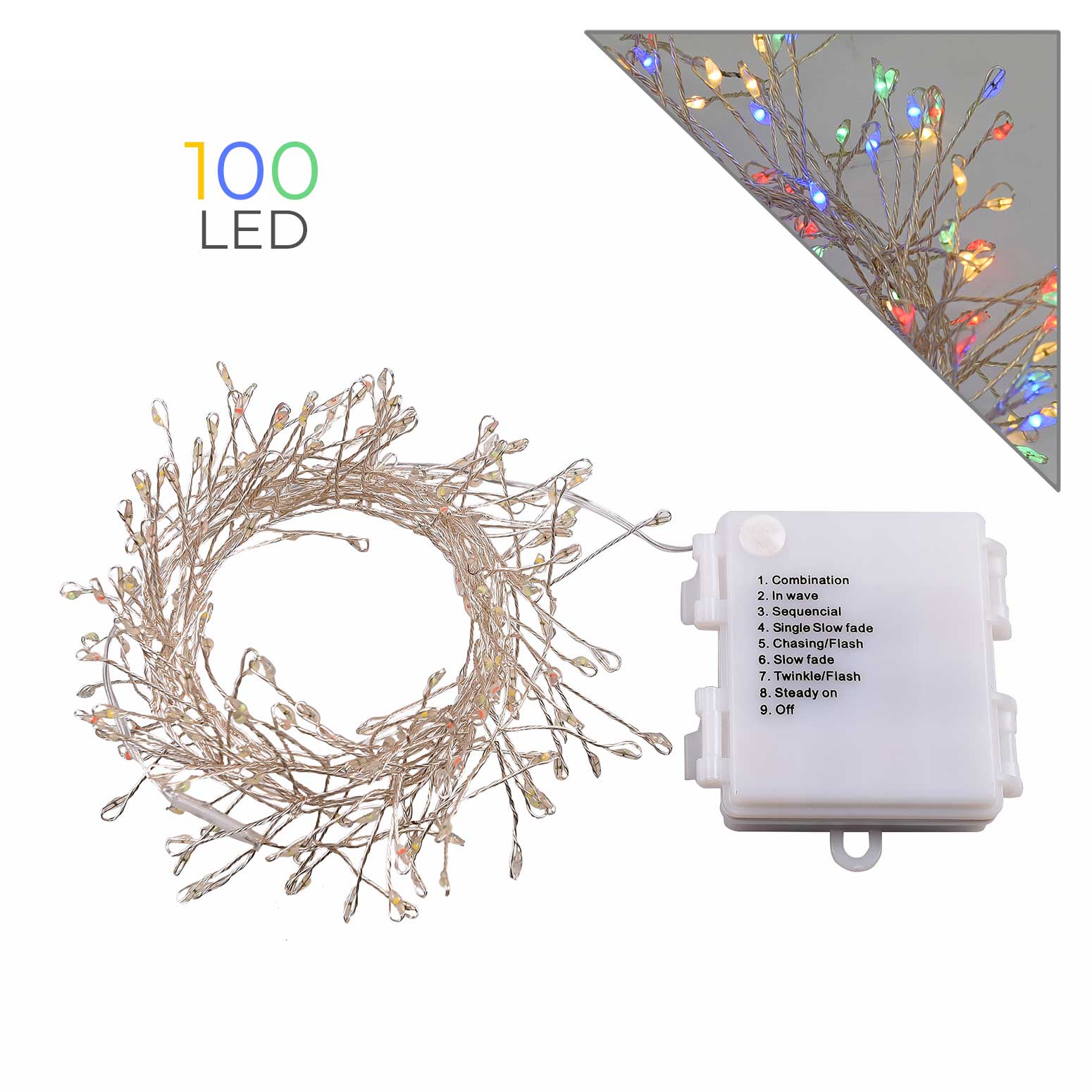 Infografica Catena a Batteria con 200 LED Multicolore su Filo di Rame da 2 Metri
