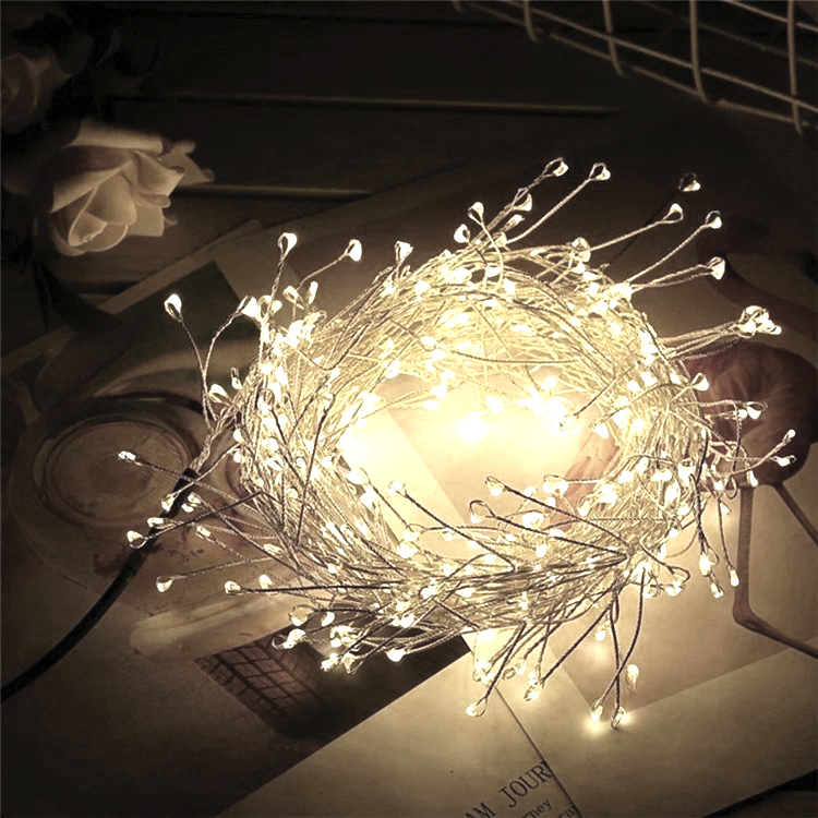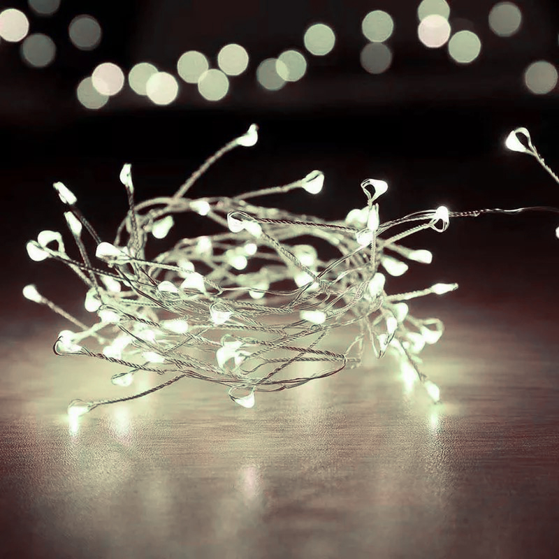 Ad ampliare la nostra linea di illuminazione natalizia quest'anno abbiamo la catena luminosa a batteria (4 non incluse) di micro led che creano un effetto ramo. La catena ha una lunghezza di 2 metri, sui quali sono posti 200 led.