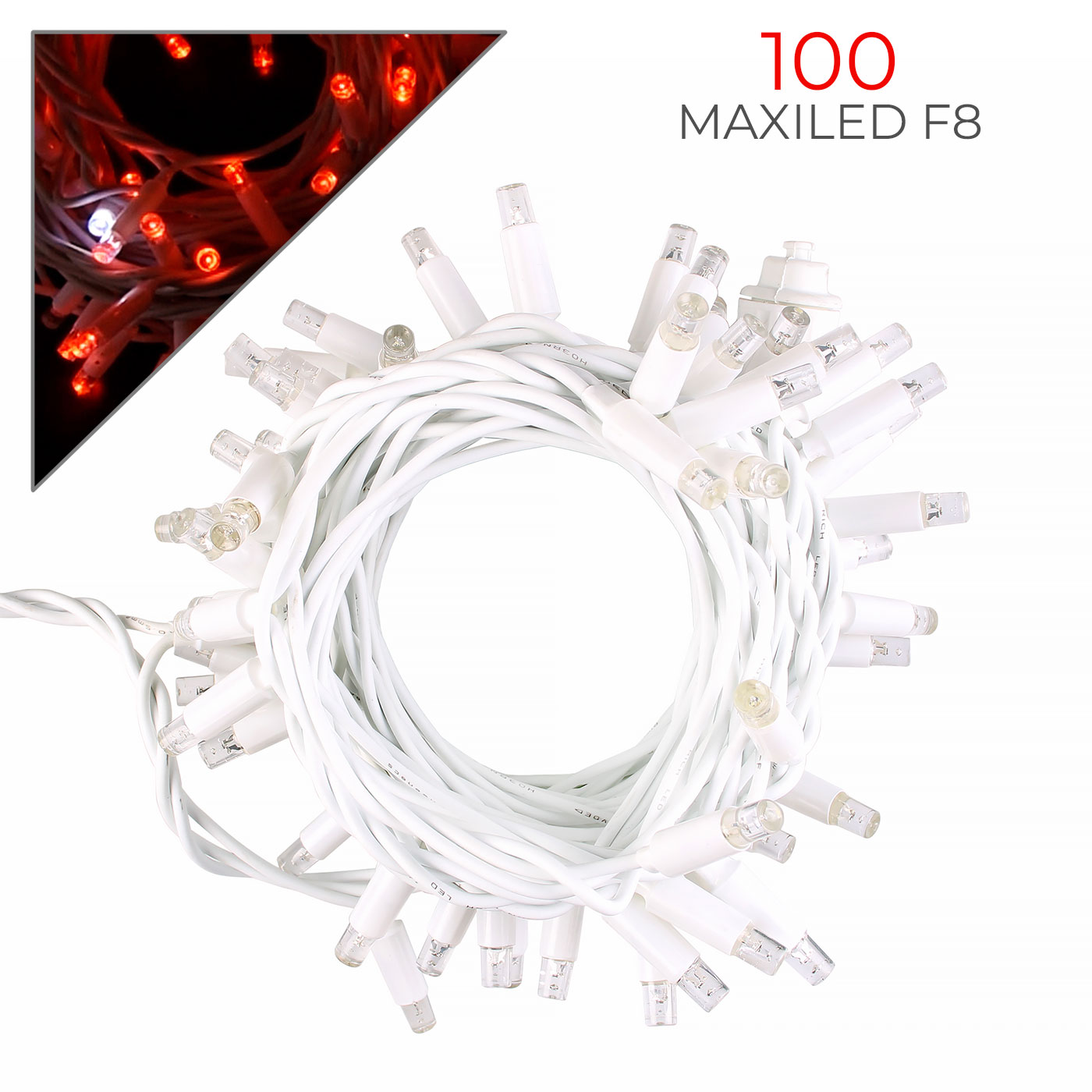 CATENA LUMINOSA CON 100 MAXI LED REFLEX 8MM CAVO BIANCO DA 10 METRI LUCE ROSSA E BIANCA - PERFETTA PER ESTERNI PROLUNGABILE FINO A 20 PEZZI