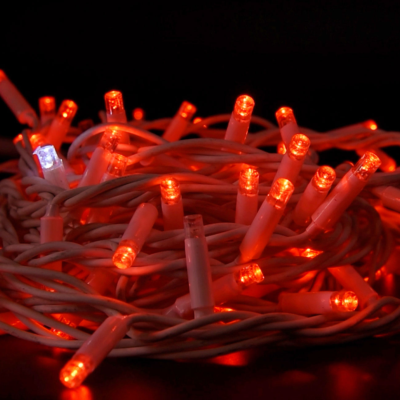 CATENA LUMINOSA CON 100 MAXI LED REFLEX 8MM CAVO BIANCO DA 10 METRI LUCE ROSSA E BIANCA - PERFETTA PER ESTERNI PROLUNGABILE FINO A 20 PEZZI