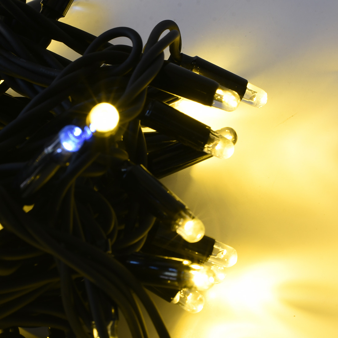 CATENA LUMINOSA PROFESSIONALE 100 MAXI-LED F8 CAVO NERO LUCE CALDA FISSA E BIANCA INTERMITTENTE - IDEALE PER FESTE MATRIMONI E GIARDINI