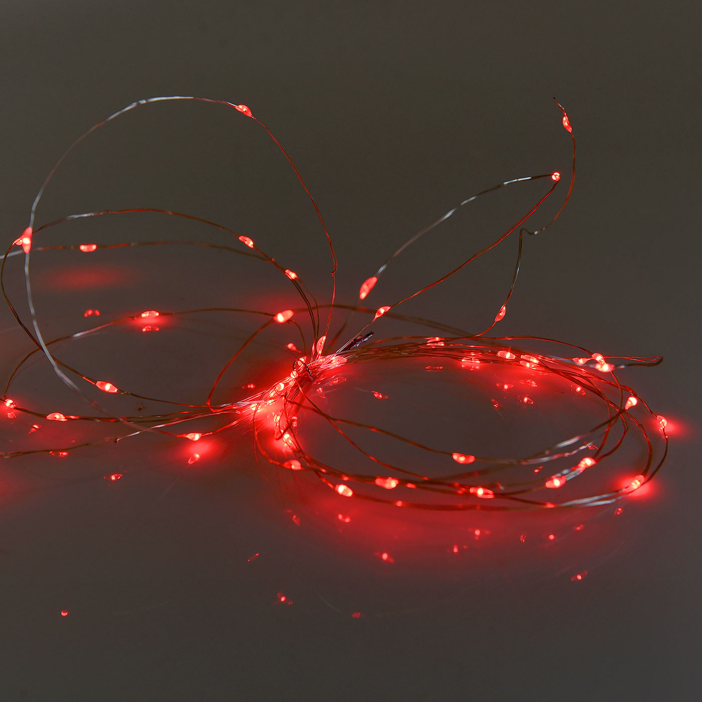 CATENA LUMINOSA A BATTERIA CON 50 MICROLED ROSSI SU FILO METALLICO FLESSIBILE DA 5 METRI - DECORAZIONE NATALIZIA WEDDING E ALLESTIMENTI INTERNI