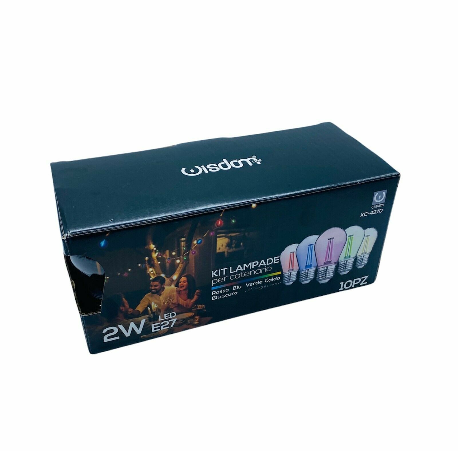 Questa catena viene fornita completa di 10 lampadine multicolore: 2 rosse, 2 blu, 2 verdi, 2 gialle, 2 viola.