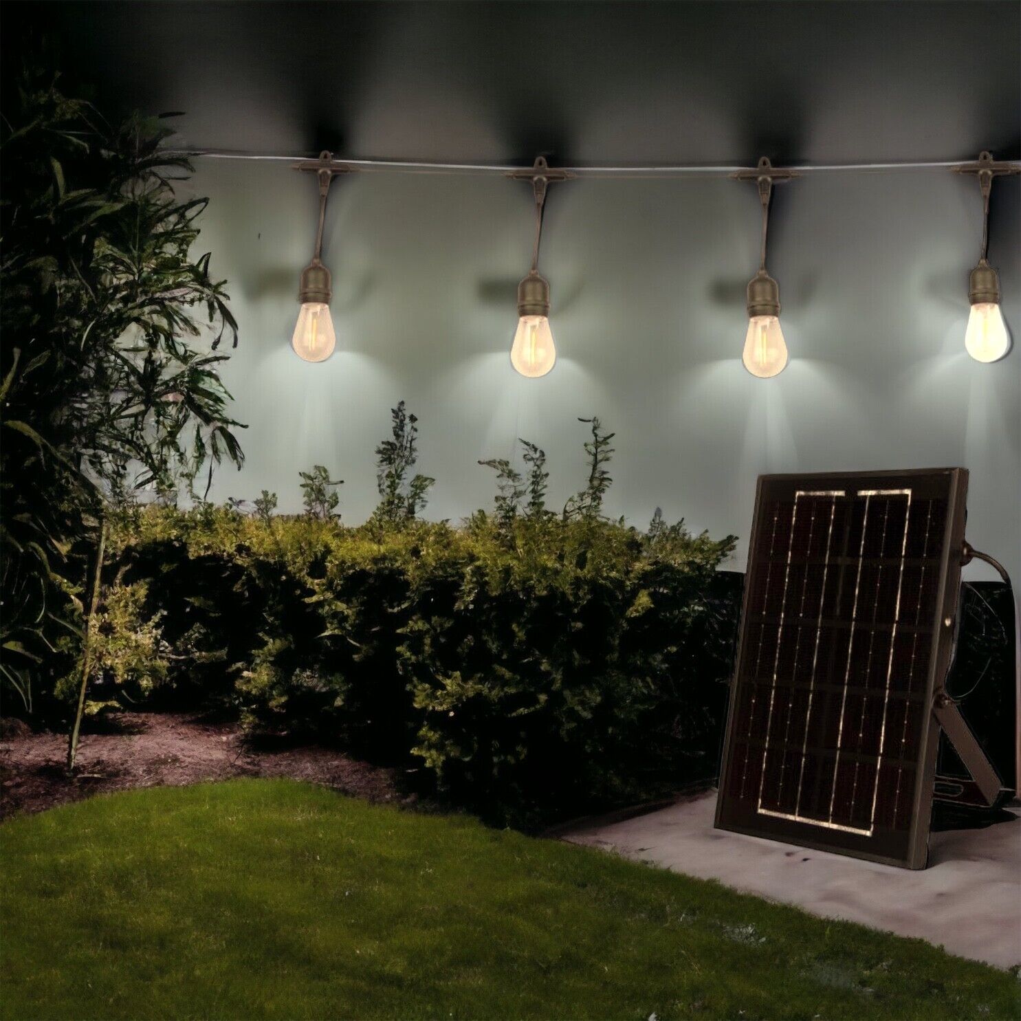 • Grazie al suo pannello si differenzia dalle altre, perchè non ha il classico pannellino piccolo, ma modello più grande 26x17 cm, dotato di supporto, in modo tale da posizionarlo ovunque vi fa più comodo (ovviamente ben esposto al sole). La catenaria è composta da 10 Portalampada con attacco E27 e le lampadine sono incluse che rendono l'atmosfera calorosa, romantica e accogliente.