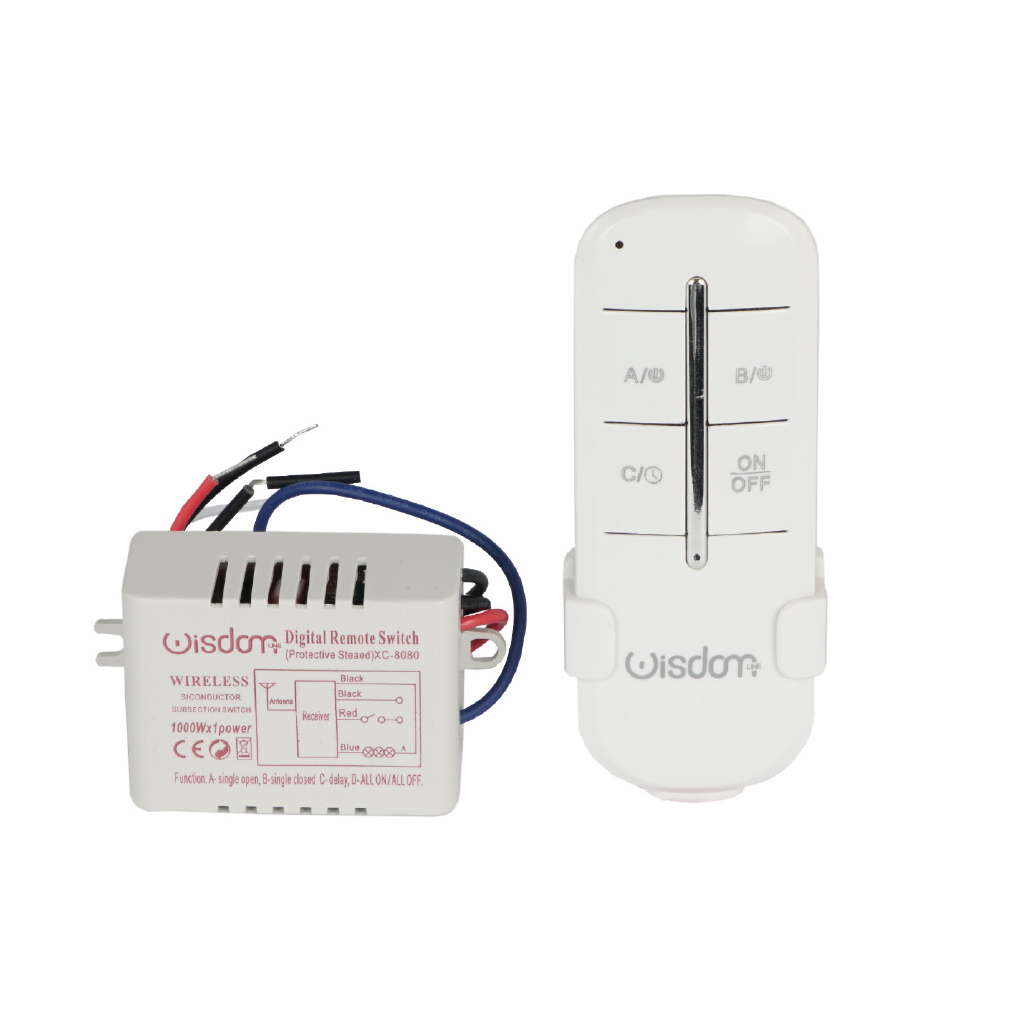 Sistema di controllo per la gestione dei sistemi di illuminazione composto da centralina e telecomando e copre una distanza massima di 30 metri in modo wireless