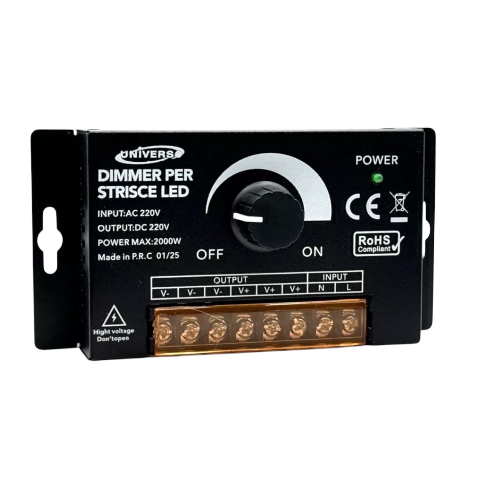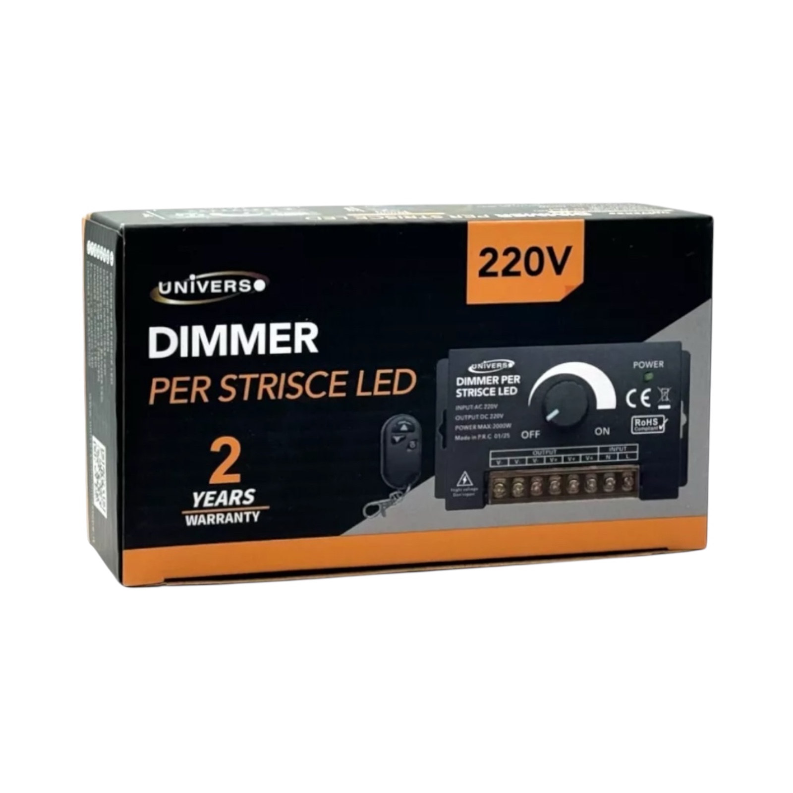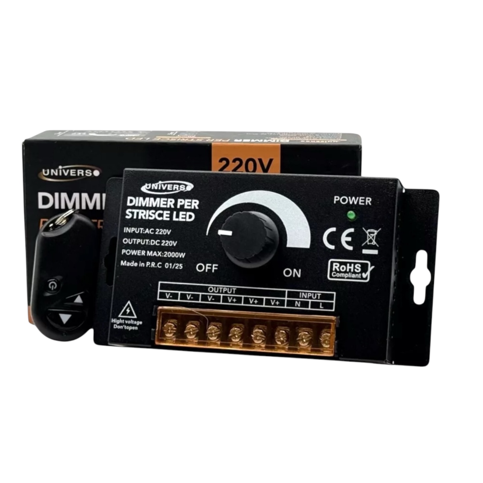 Dimmer 220V per Strisce LED Monocolore – 3 Uscite, Regolazione con Manopola e Telecomando