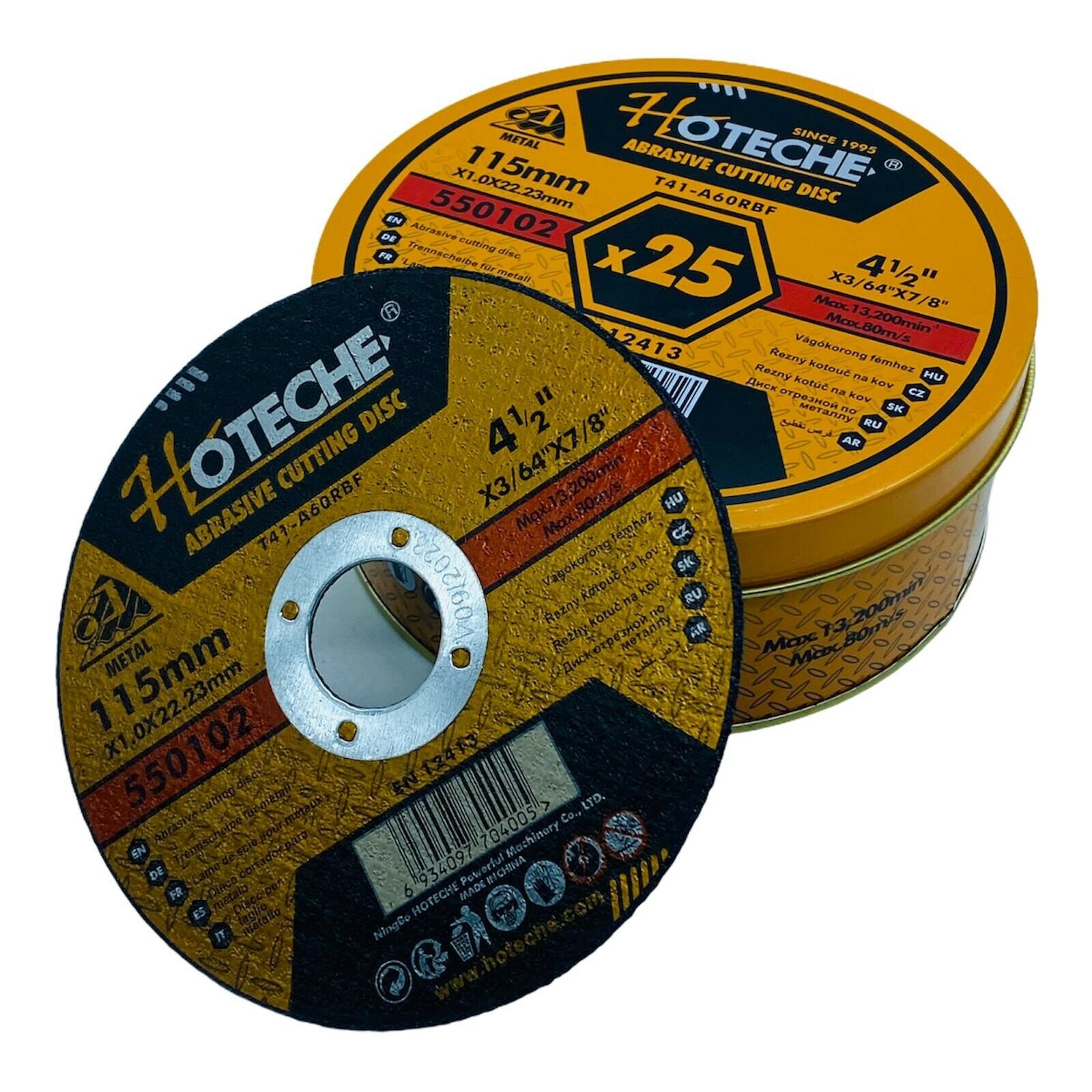 Il kit da 25 dischi per il taglio del ferro da 115, vi verrà fornito con un comodissimo cofanetto in metallo.