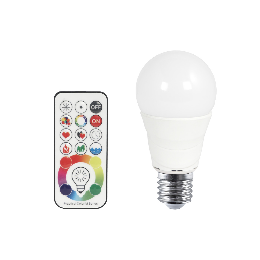 La lampada led E27 RGBW ha un flusso luminoso equivalente ad una tradizionale lampada da 50 W, ma con un consumo di soli 5 W.