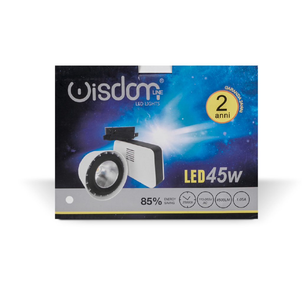 Faretto led a binario ( compatibile con binario trifase) da 45w bianco con colore luce naturale 4000k