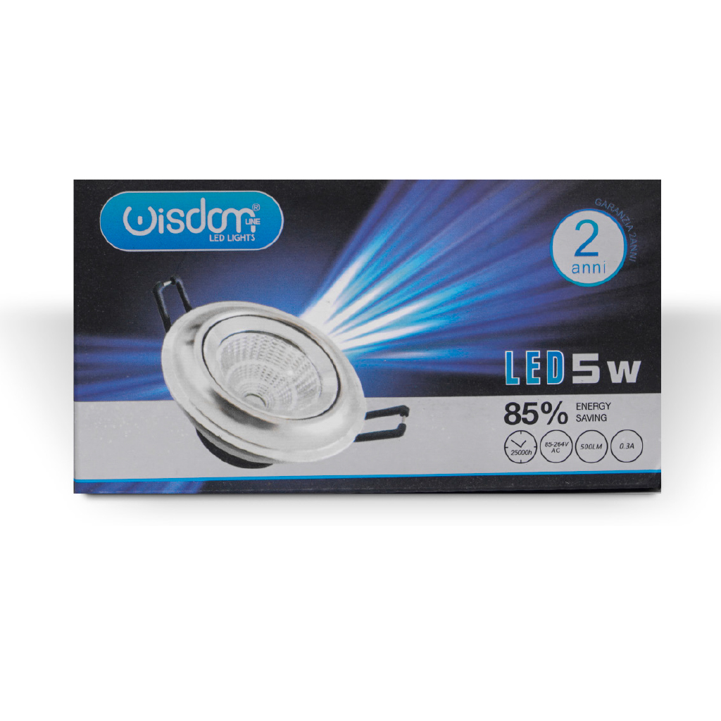 Monta chip led cob ( chip on board) integrato ed è caratterizzato da un angolo della luce a 24° con effetto luminoso a fascio stretto