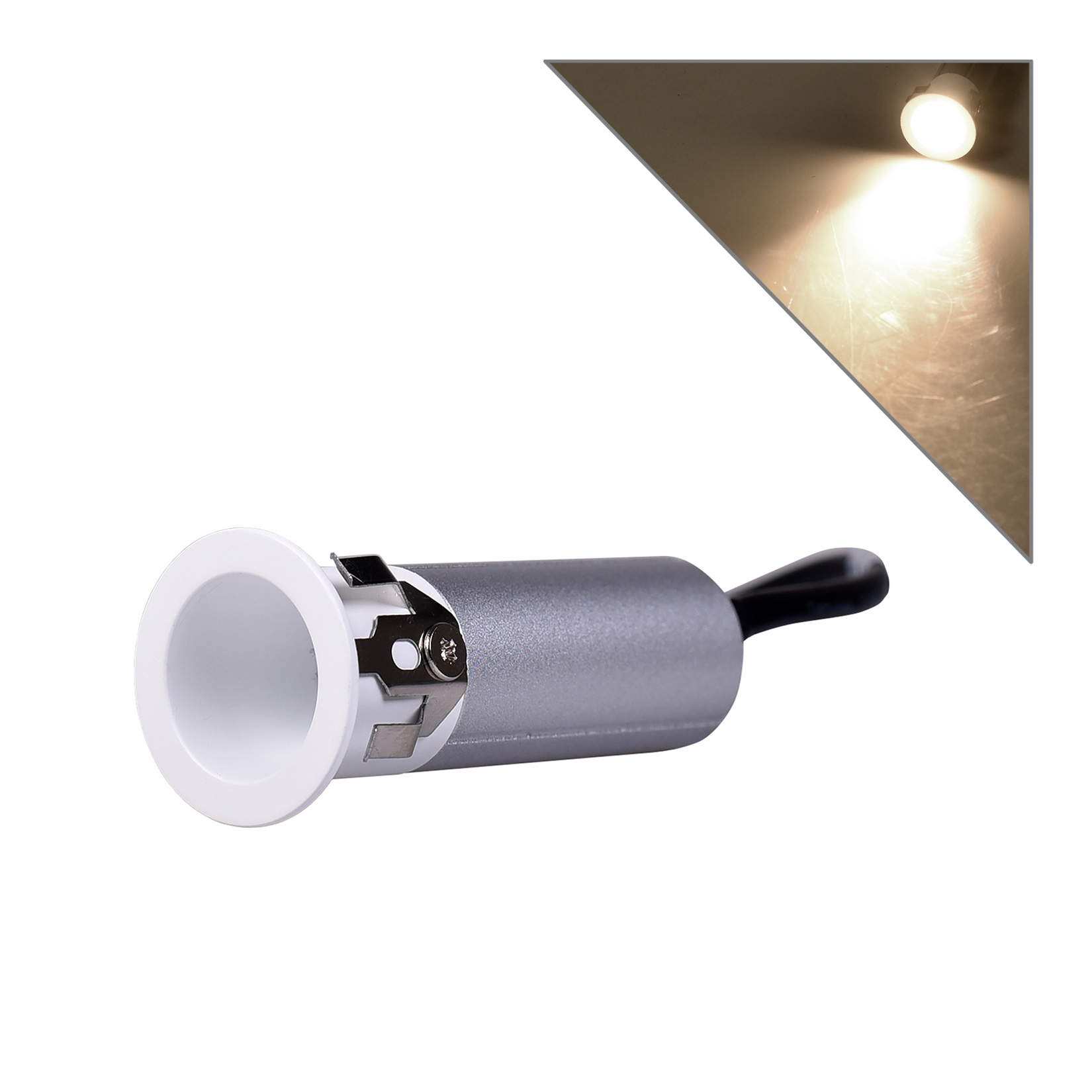 Realizzato in alluminio bianco e argento, si integra perfettamente in ogni ambiente, dai soffitti delle abitazioni agli espositori di negozi e showroom. Le sue dimensioni compatte (57 x 25 mm) e il foro di incasso da 20 mm lo rendono perfetto per installazioni discrete e raffinate.