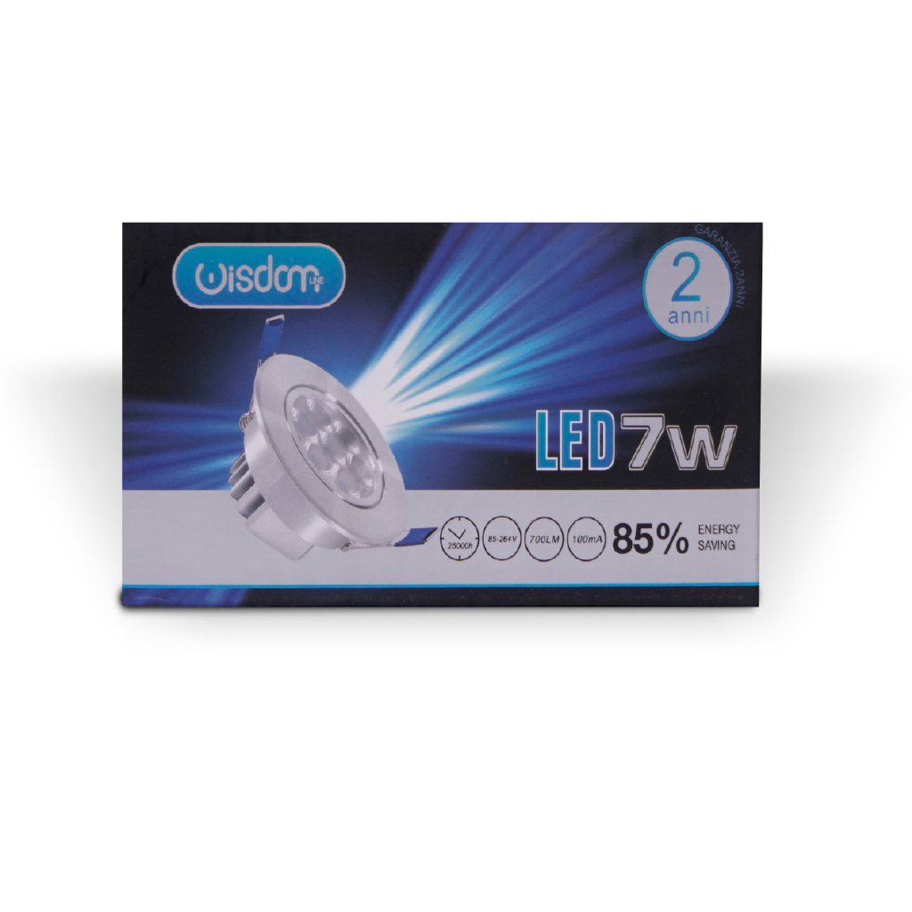 Faretto led da incasso orientabile con vetro opacizzato 7w 6000K luce fredda