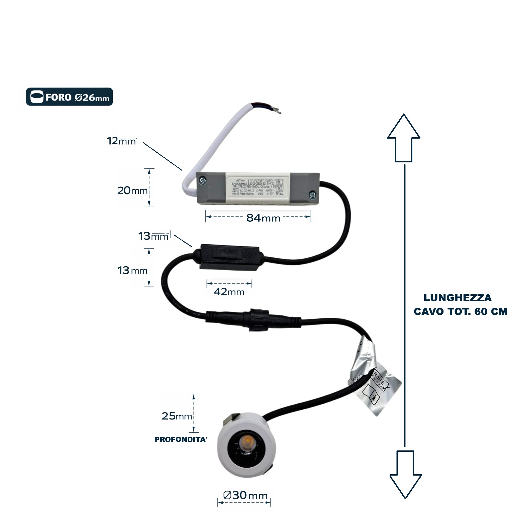 • Foro incasso: 26 mm