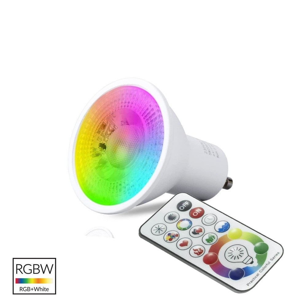 Faretto led RGB più luce bianca fredda con attacco GU10 multicolor gestibile con telecomando illuminazione per cromoterapia