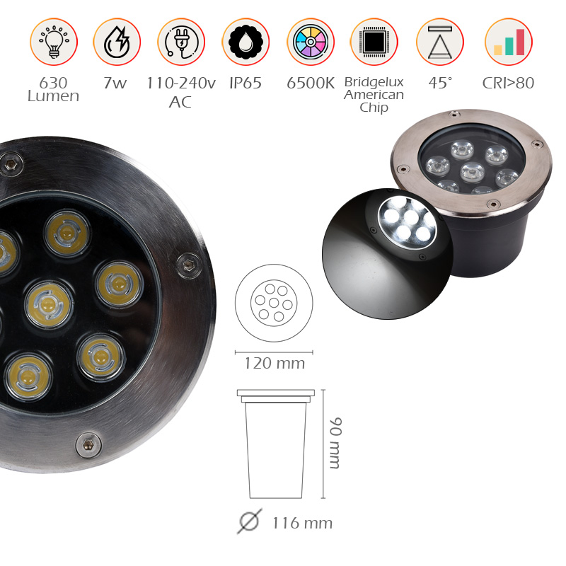 Infografica Faretto Segnapasso da Incasso 7W Luce Bianca IP65 per Esterni