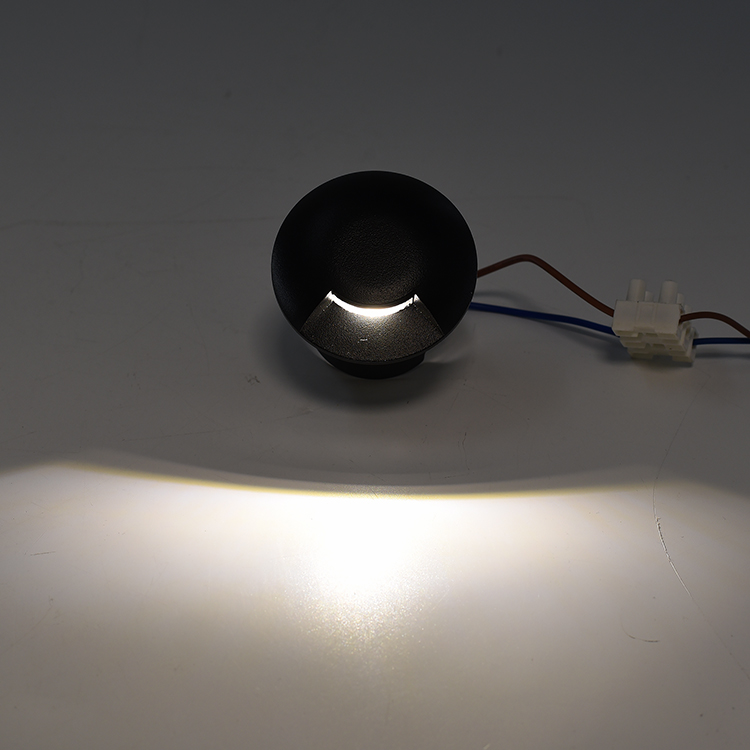 Infografica Luce Faretto LED Segnapasso da 1W Tondo in Alluminio Nero Luce NaturaleFaretti Segna Passi LED 1W Installati a Pavimento Accesi Luce Naturale 4000K°