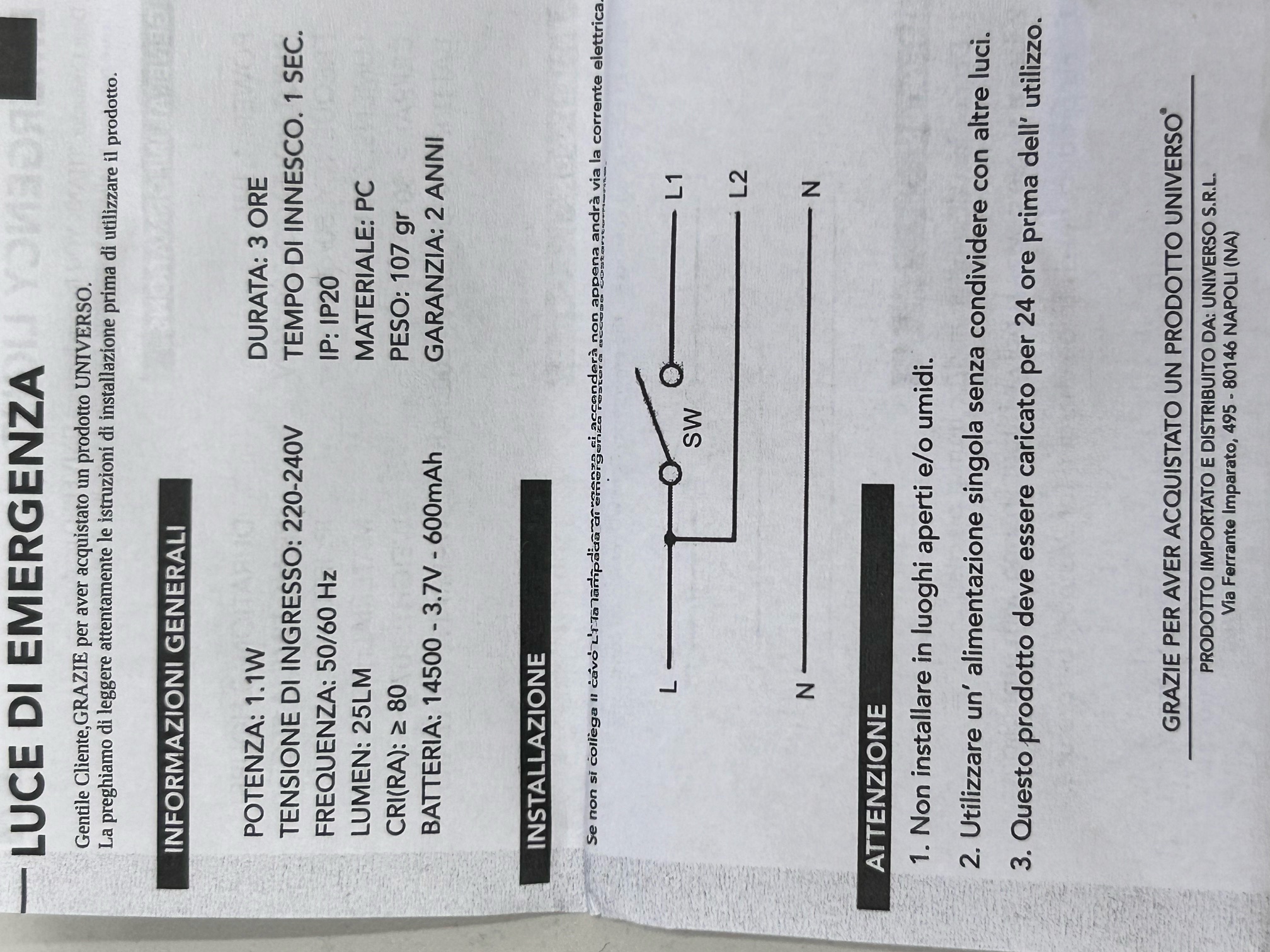 • Doppia Funzione: Offre sia la modalità di emergenza, attivata solo in caso di interruzione della corrente elettrica, sia la modalità sempre accesa + emergenza, che mantiene la luce accesa con attivazione automatica in caso di blackout.