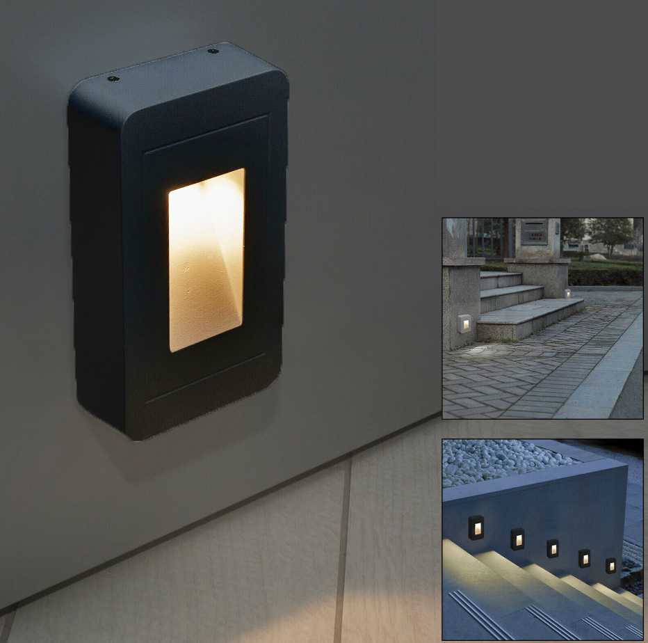 FARETTO A LED DA ESTERNO PER GIARDINO SEGNAPASSO LUCE 12W SCALE PARETE MURO IP65 NERO CON LUCE CALDA 3000K