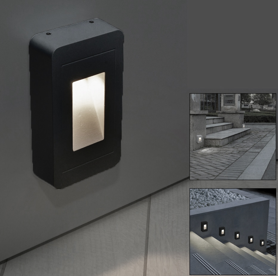 Faretto segnapassi esterno IP65 LED 12W scale giardino Nero Luce FREDDA 6500K