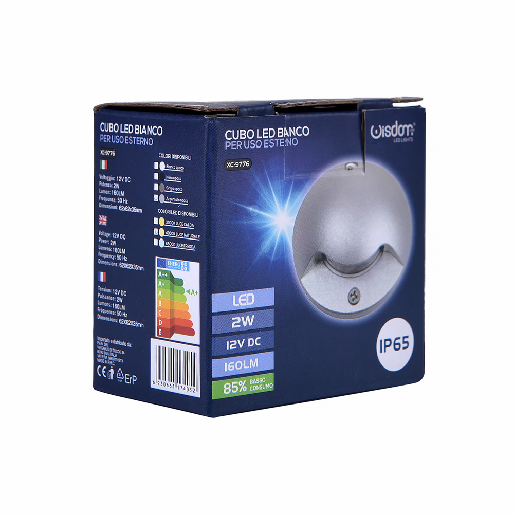 Infografica Faretto Segna Passi 12V Radente Potenza 2W Luce Naturale 160 Lumen