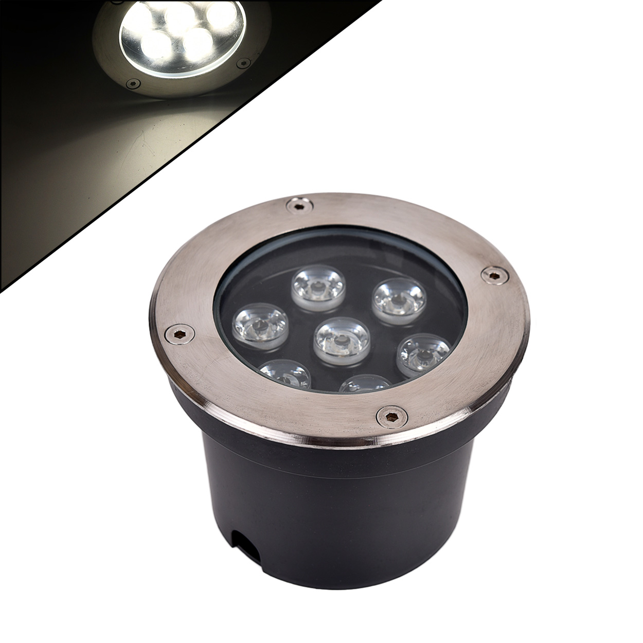 Nessun alimentatore aggiuntivo! Basta collegarlo direttamente alla tensione di rete (220V) e il gioco è fatto. Con le sue dimensioni compatte (120 x 90 mm) e il foro di incasso da 116 mm, si integra perfettamente nel pavimento o nel terreno senza risultare ingombrante.