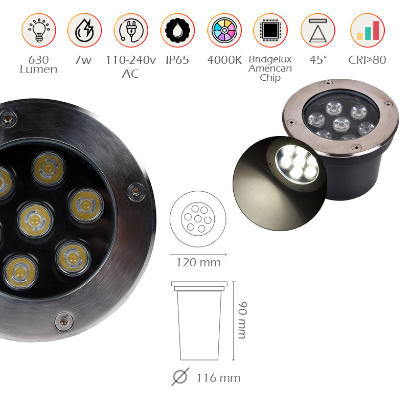 Nessun alimentatore aggiuntivo! Basta collegarlo direttamente alla tensione di rete (220V) e il gioco è fatto. Con le sue dimensioni compatte (120 x 90 mm) e il foro di incasso da 116 mm, si integra perfettamente nel pavimento o nel terreno senza risultare ingombrante.