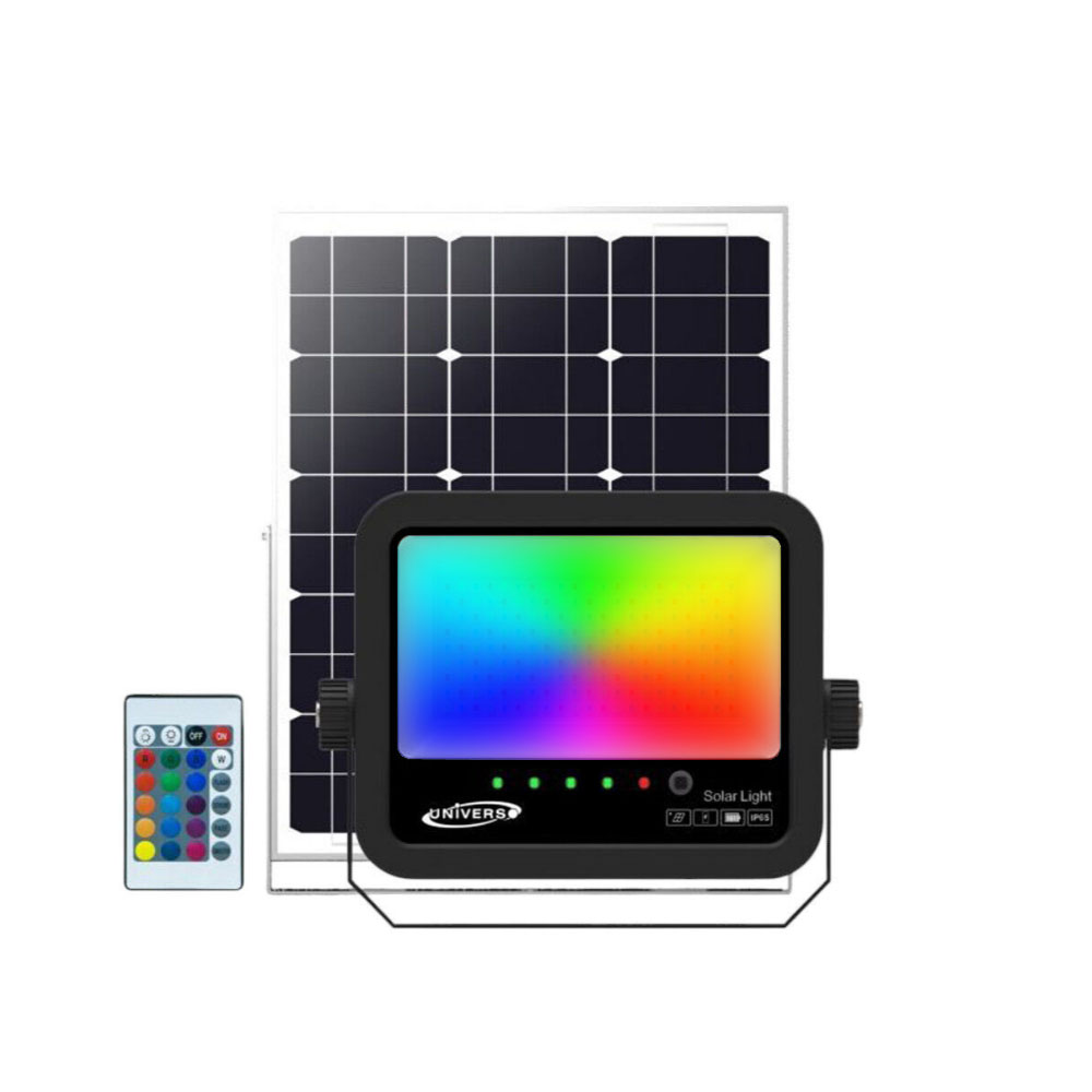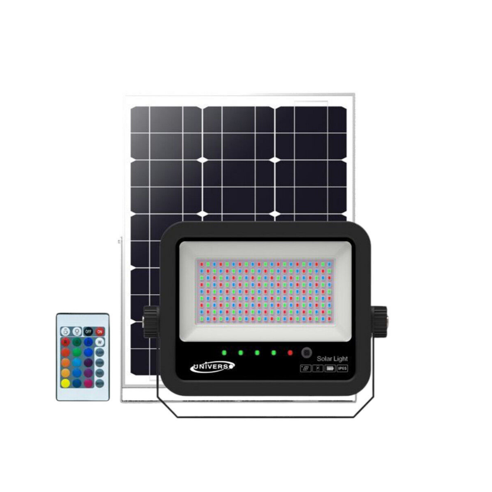 Faro Solare RGB 80W con Telecomando, Pannello Solare , 300 Lumen, Modalità Flash/Strobo/Fade/Smooth, Resistente IP65, Illuminazione Esterni Ecologica