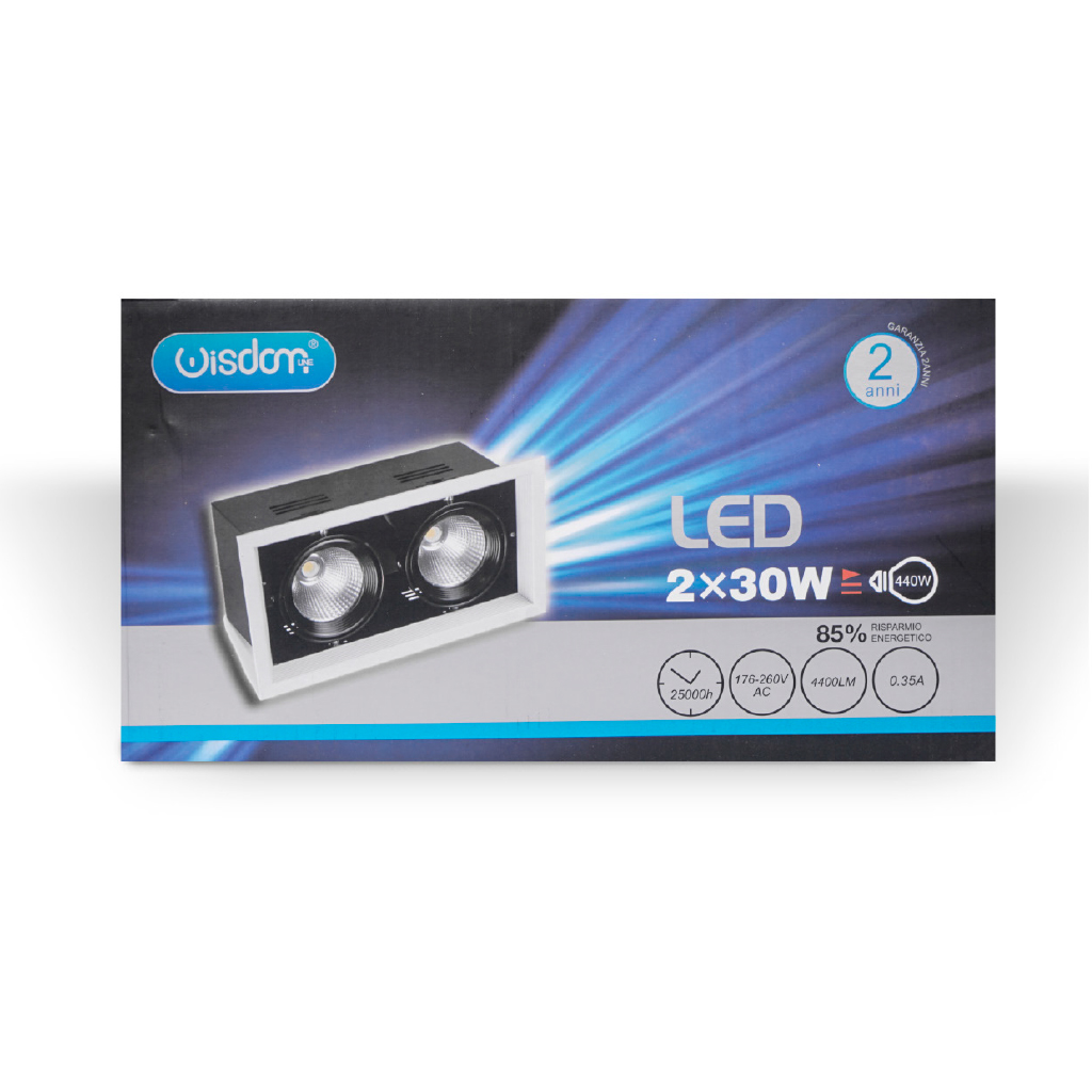 Faro led orientabile da incasso led cob 2x30w 4000K luce naturale