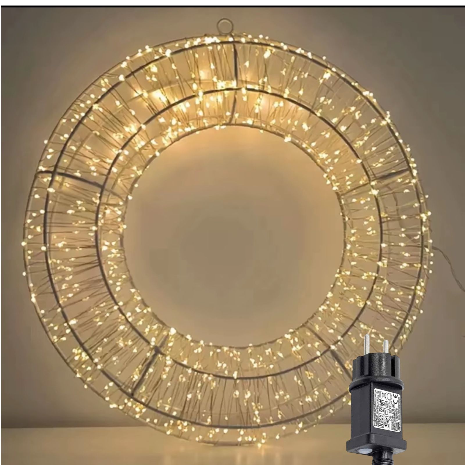 GHIRLANDA LUMINOSA IN ALLUMINIO Ø50 CON MICRO LED A LUCE CALDA FISSA PER DECORAZIONI ELEGANTI DI ESTERNI E INTERNI A NATALE