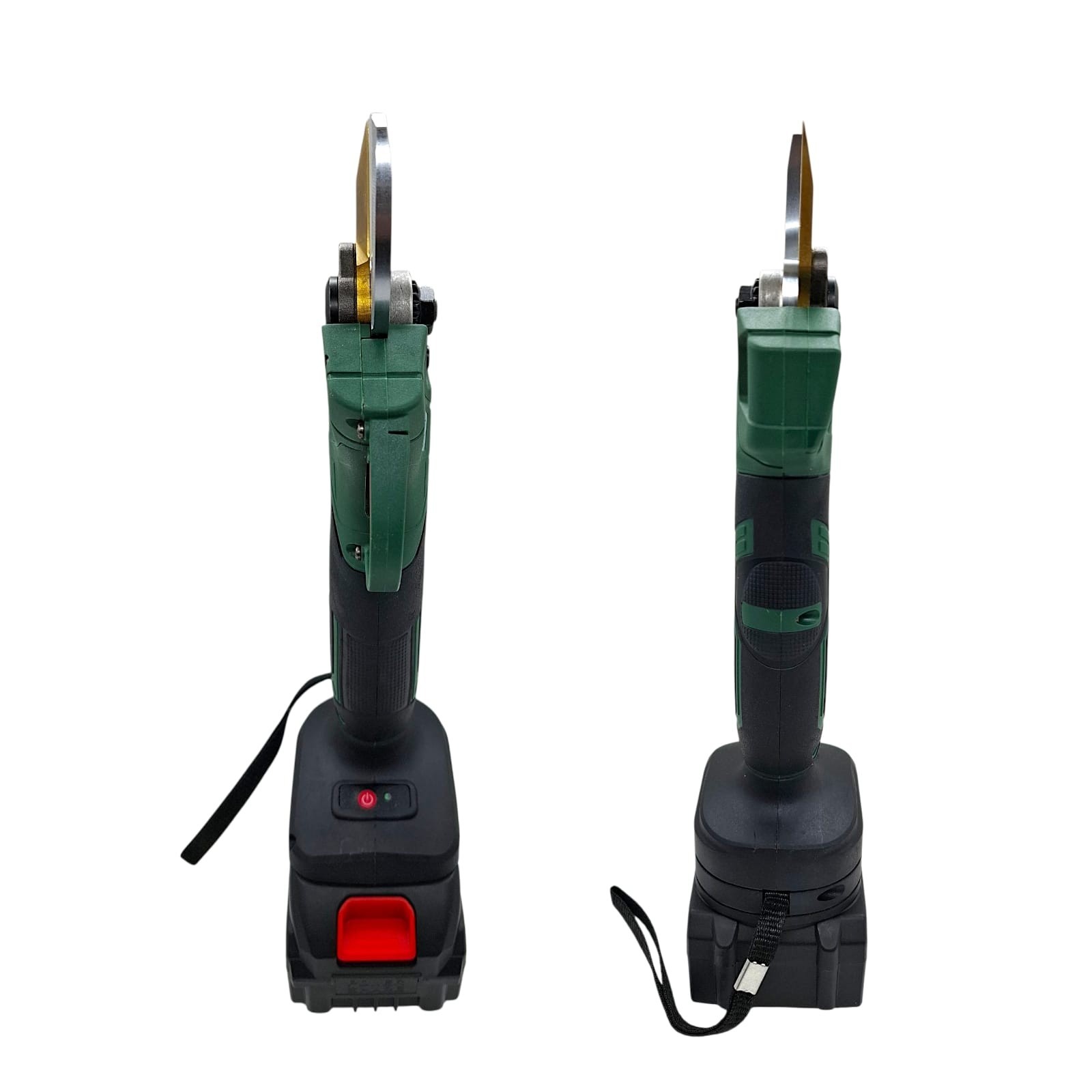 La cesoia elettrica offre un taglio netto fino a 35 mm, con display digitale che mostra la carica residua e il conteggio dei tagli effettuati.