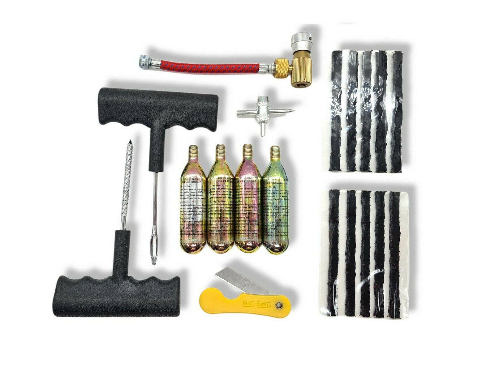 KIT RIPARAZIONE PNEUMATICO BICI MOTO CARTUCCE AD ARIA COMPRESSA KIT PORTATILE