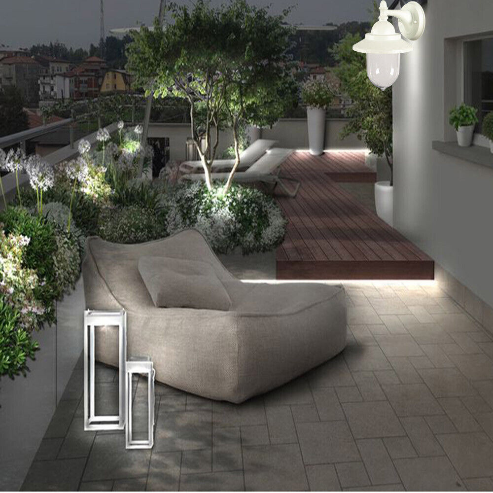 LAMPADA DA PARETE E27 PER ESTERNO IP44 BIANCA APPLIQUE A LANTERNA IN ALLUMINIO E PVC IDEALE PER GIARDINI TERRAZZI E INGRESSI
