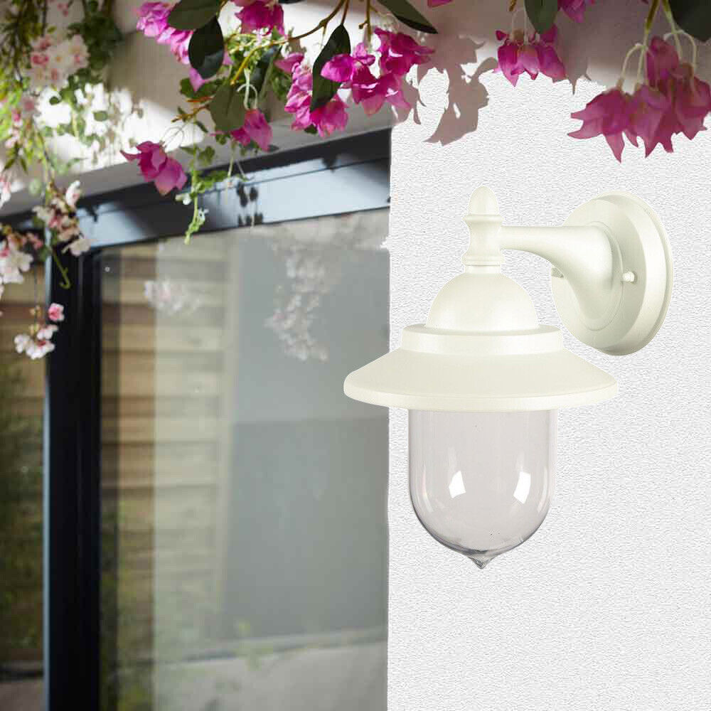 LAMPADA DA PARETE E27 PER ESTERNO IP44 BIANCA APPLIQUE A LANTERNA IN ALLUMINIO E PVC IDEALE PER GIARDINI TERRAZZI E INGRESSI