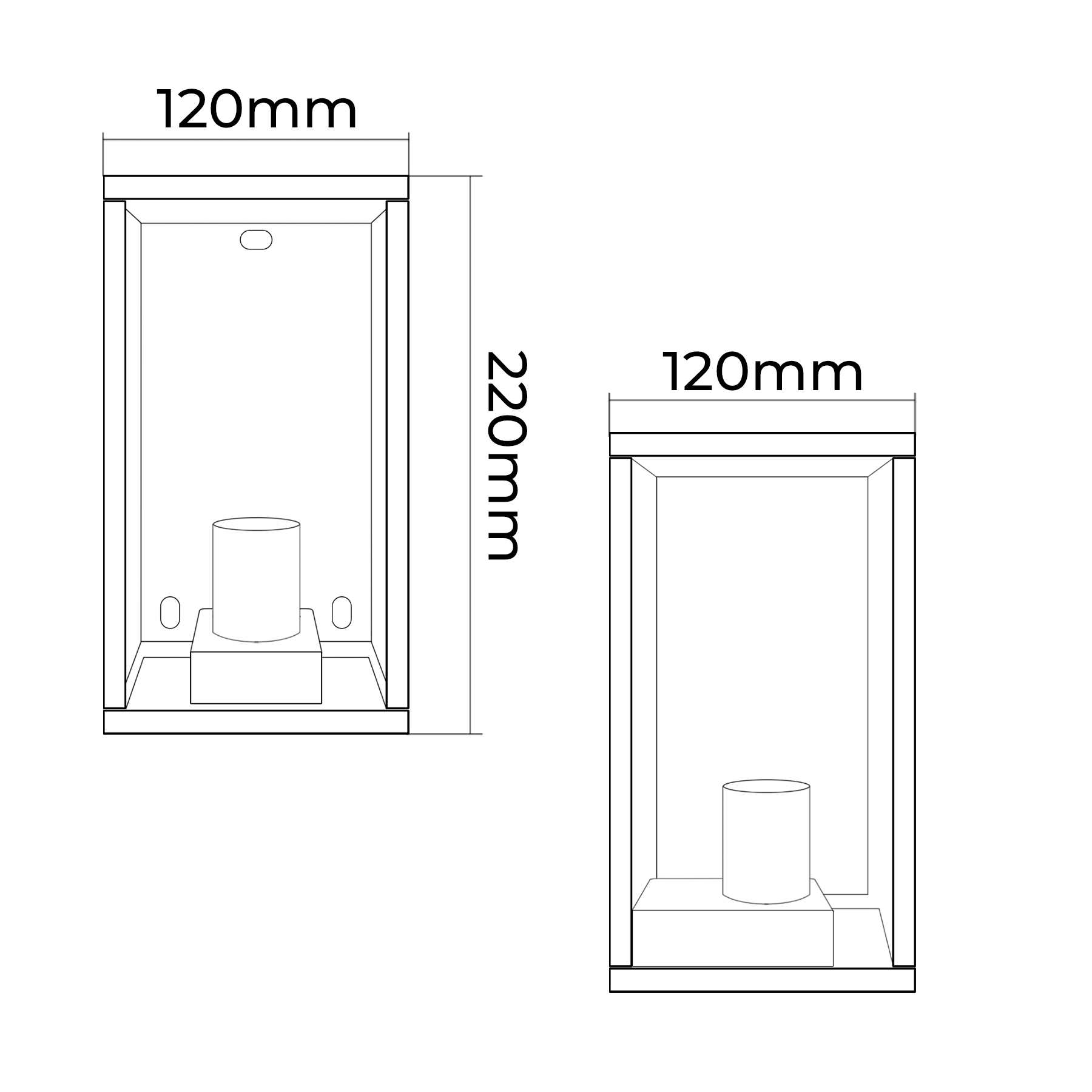 Infografica Dimesioni 220x120x120mm Lampada da Parete con Attacco per Lampadine E27 fino a 15W
