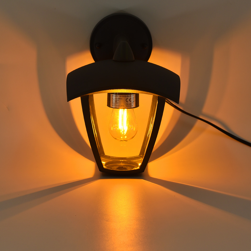 Questa applique da esterno è progettata per essere compatibile con tutte le lampadine E27 (non incluse), permettendoti di scegliere tra soluzioni LED a basso consumo o tradizionali fino a 60W. Il montaggio è semplice e veloce grazie alle viti di fissaggio incluse nella confezione. Può essere installata in pochi minuti su qualsiasi parete esterna, rendendola un'opzione perfetta per chi desidera un’illuminazione funzionale e decorativa senza complicazioni.