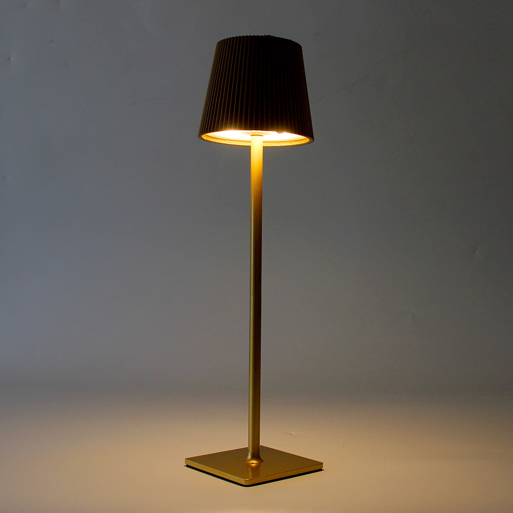 La lampada da tavolo LED color oro con paralume plissettato, ricaricabile tramite USB e pannello solare, rappresenta una sintesi perfetta tra estetica raffinata, funzionalità tecnologica e attenzione alla sostenibilità. Questa lampada non è solo una sorgente di luce, ma un vero e proprio elemento d’arredo, pensato per valorizzare ambienti interni ed esterni come ristoranti, bar, terrazze, giardini, hotel e abitazioni private. Grazie alla sua tripla temperatura colore regolabile e al sensore crepuscolare integrato, si adatta con eleganza a ogni momento della giornata e a ogni contesto stilistico, dal moderno al classico.