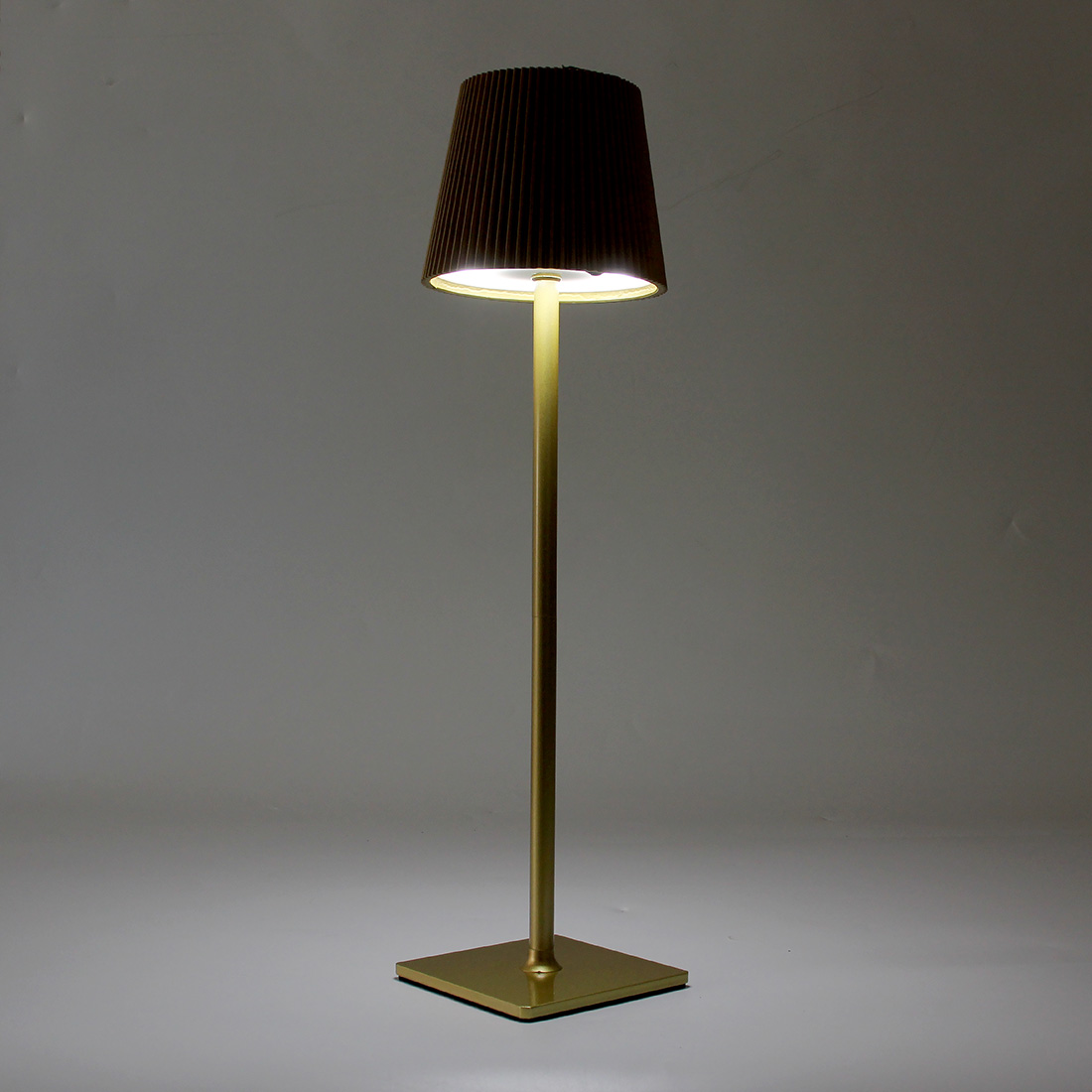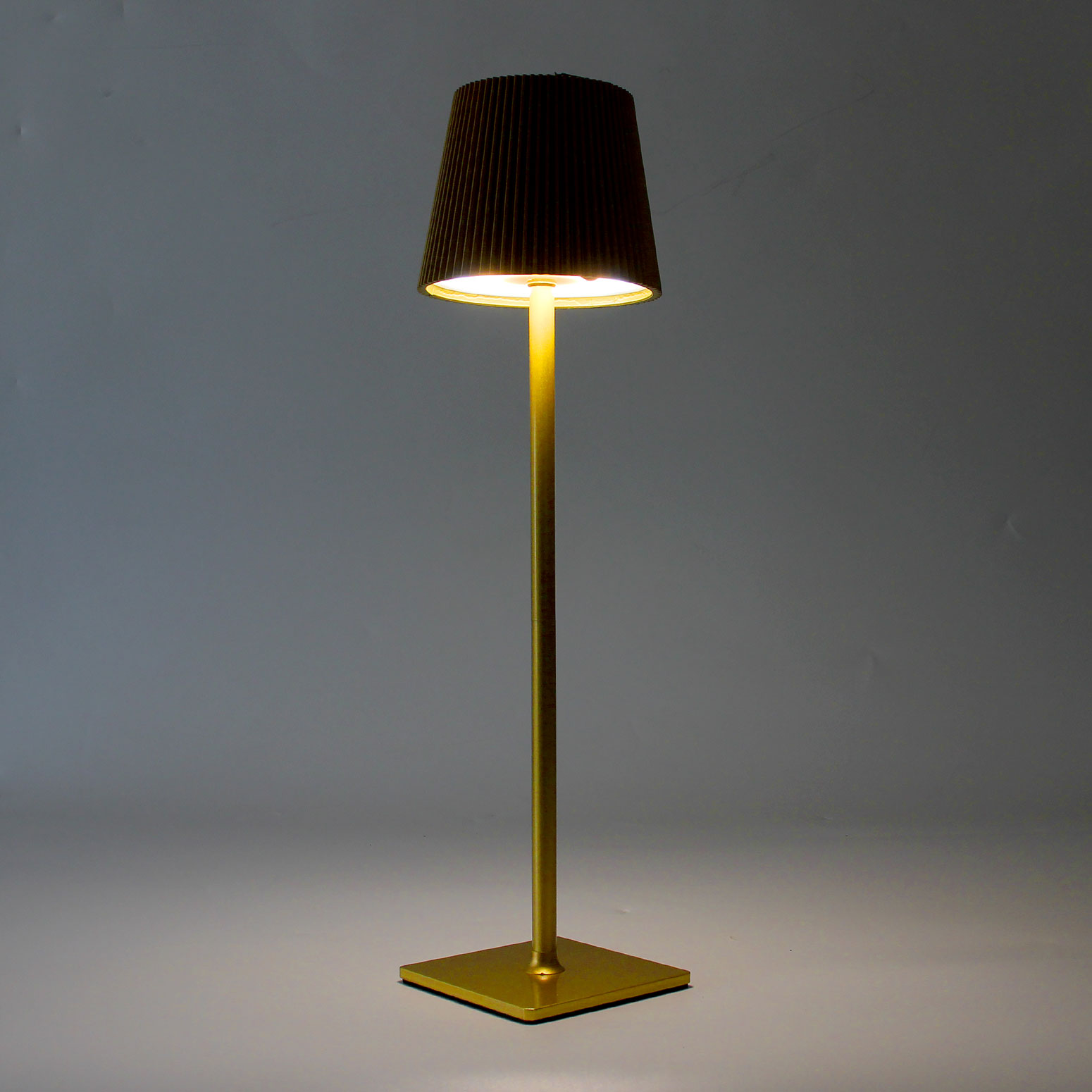 La sua estetica dorata e la possibilità di funzionare in assenza di fili la rendono perfetta non solo per l’uso professionale, ma anche per la casa. Può diventare il punto luce decorativo in una zona lettura, un angolo relax o su un comodino. All’aperto è ideale per cene in giardino, feste in terrazza o pic-nic notturni.